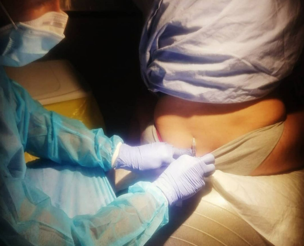 Este método de alivio del dolor lumbar (no abdominal ni perineal) consiste en inyectar 0,5 – 1 ml de agua estéril en cuatro puntos establecidos en la región sacra (en el Rombo de Michaelis), que interrumpe la difusión de los estímulos de dolor hacia el cerebro.